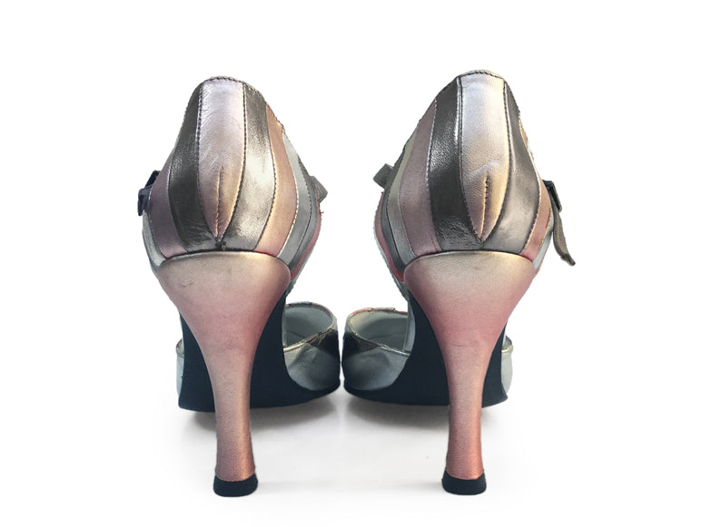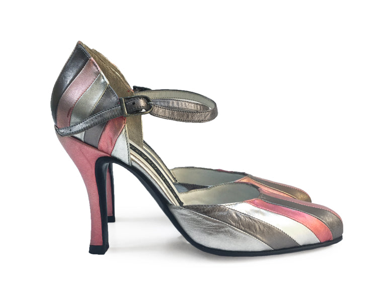 Shown in an exquisite combination of Metallics: Silver, Pewter and Red.